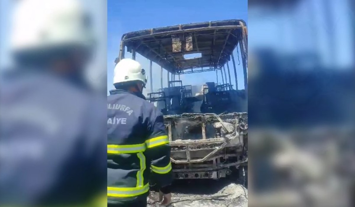 Hilvan’da seçim güvenliği sağlamak için görevlendirilen polisleri taşıyan midibüsün motoru, Şanlıurfa-Diyarbakır kara yolu GAP Havalimanı yakınlarında alev aldı.
