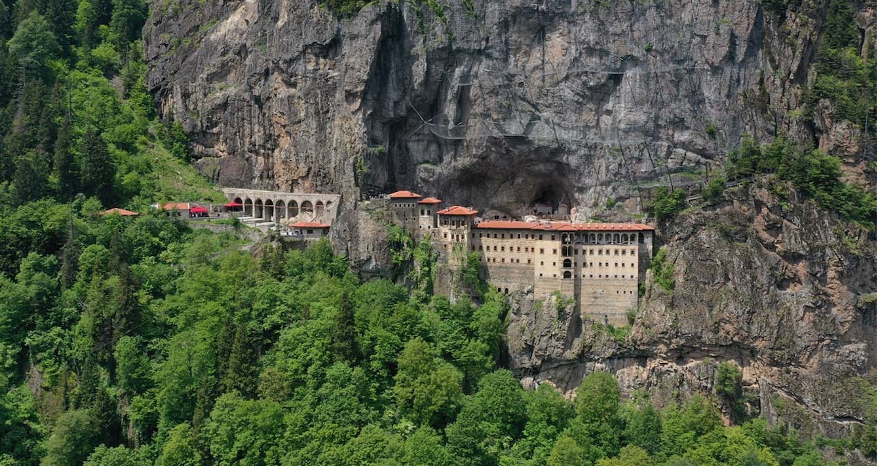 Trabzon’un Maçka ilçesindeki Karadağ’ın Altındere Vadisi’nde 300 metre yükseklikte kayalar oyularak inşa edilen Sümela Manastırı, ziyaretçilerine doğa, tarih ve kültürü bir arada sunuyor.
