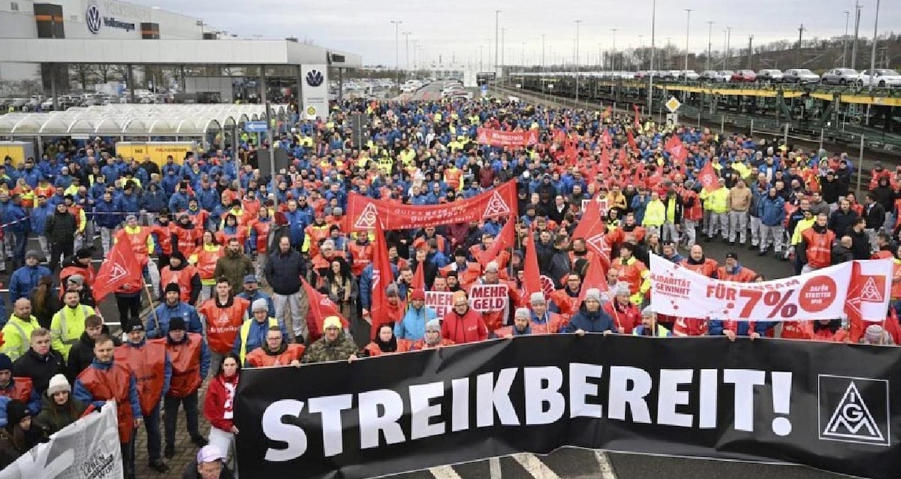 Alman otomobil devi Volksvagen’de çalışan işçileri Almanya’nın en büyük sendikası IG Metall’ın öncülüğünde greve çıktı.