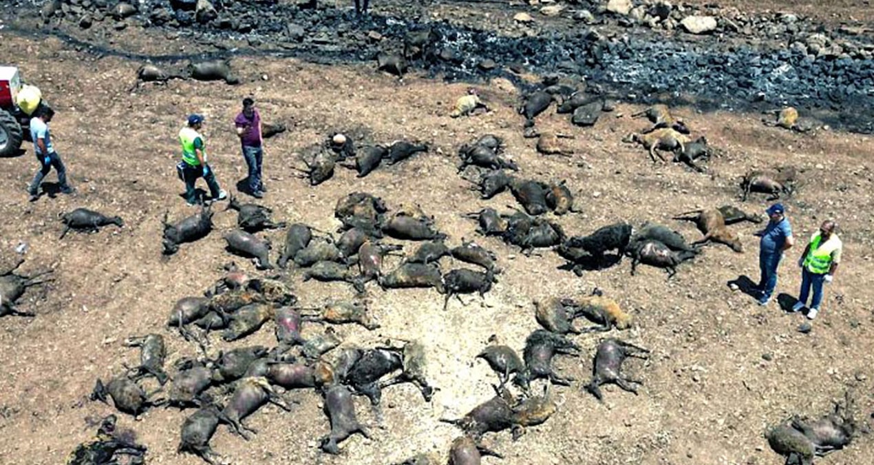 Telef olan hayvanlar, aşırı kavurucu sıcakların da etkisiyle çevreye bulaşıcı hastalık ve kötü koku yayılmaması için iş makinelerinin da yardımıyla kazılan derin çukurlara atıldıktan sonra üzerleri dezenfektan dökülerek kapatıldı.