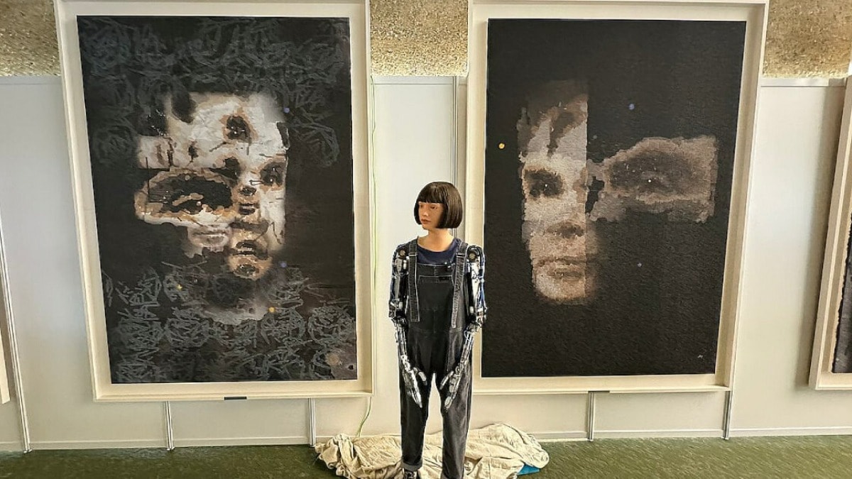 Aidan Meller liderliğindeki bir ekip tarafından yaratılan insansı robot kadın Ai-Da, yapay zeka sistemi, robotik elleri ve gözlerindeki kameraları kullanarak heykel, resim ve müzik üretebiliyor.