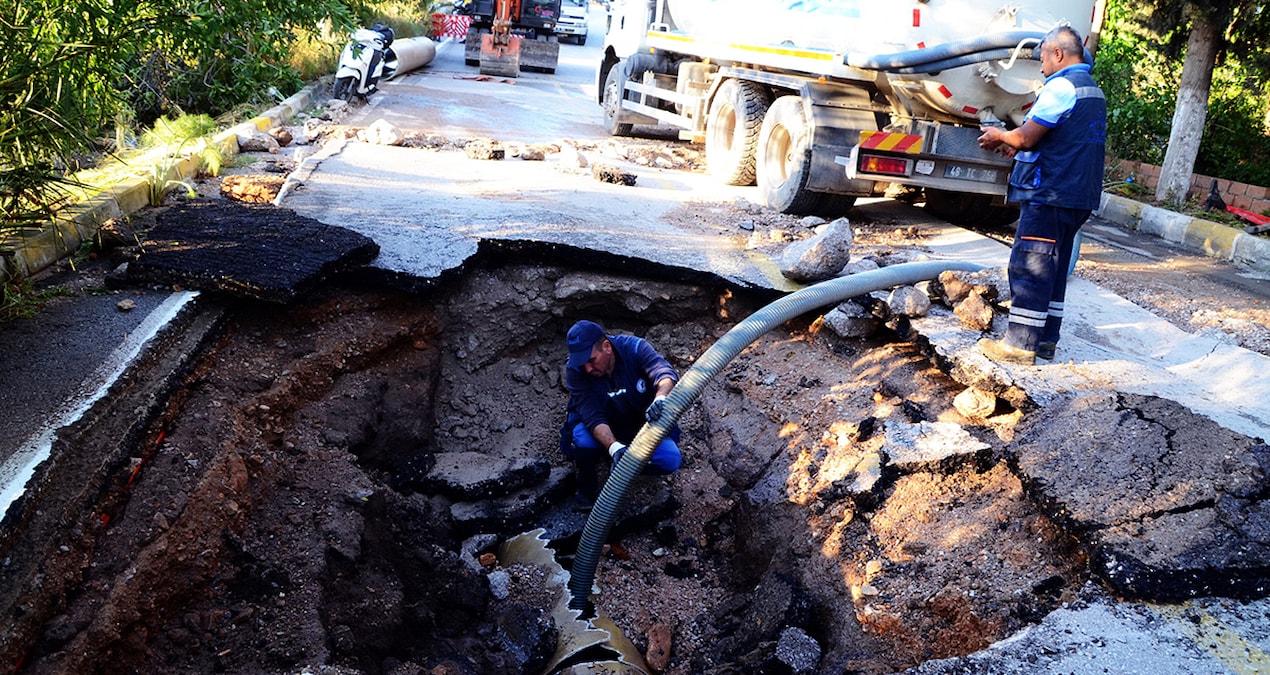 Muğla’nın Bodrum ilçesine bağlı turistik Gölköy Mahallesi’nde gece yarısı su ana isale hattı patladı.