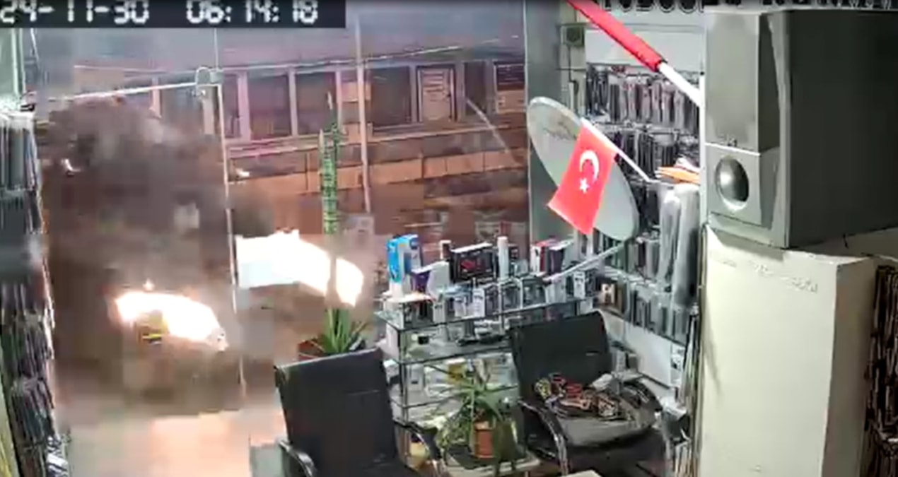 Rize’de yokuştan inerken sürücüsünün direksiyon kontrolünü yitirdiği 61 FL 993 plakalı hafif ticari araç, kaldırıma çıkıp, yol kenarındaki elektronik ürün onarım ve satışı yapılan iş yerine girdi.