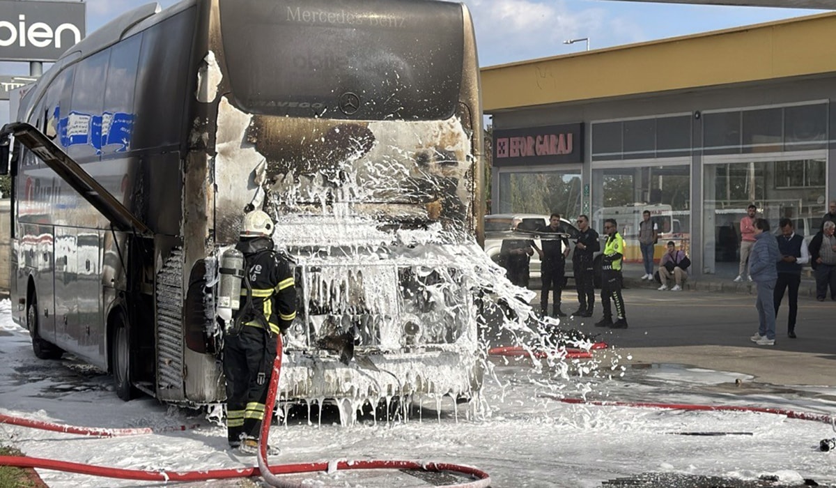 Durumu fark eden sürücü, otobüsü yol kenarındaki bir benzinliğe çekerek durdurdu. İhbar üzerine bölgeye itfaiye, polis ve jandarma ekipleri gelirken, yolcular otobüsten tahliye edildi.