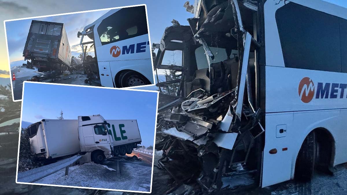 Ankara yönüne giden bir yolcu otobüsü, ilçenin Topdere mevkiinde bir çekici ve otomobille çarpıştı.