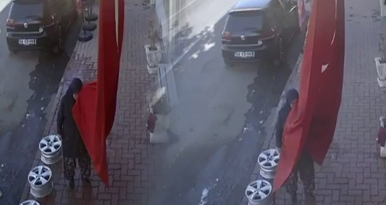 Ortahisar ilçesinde, kaldırımda yürüyen bir kadın, bir lastikçiye ait dükkanın önünde asılı olan Türk bayrağını görünce durdu ve bayrağı öptü. Daha sonra yoluna devam etti.